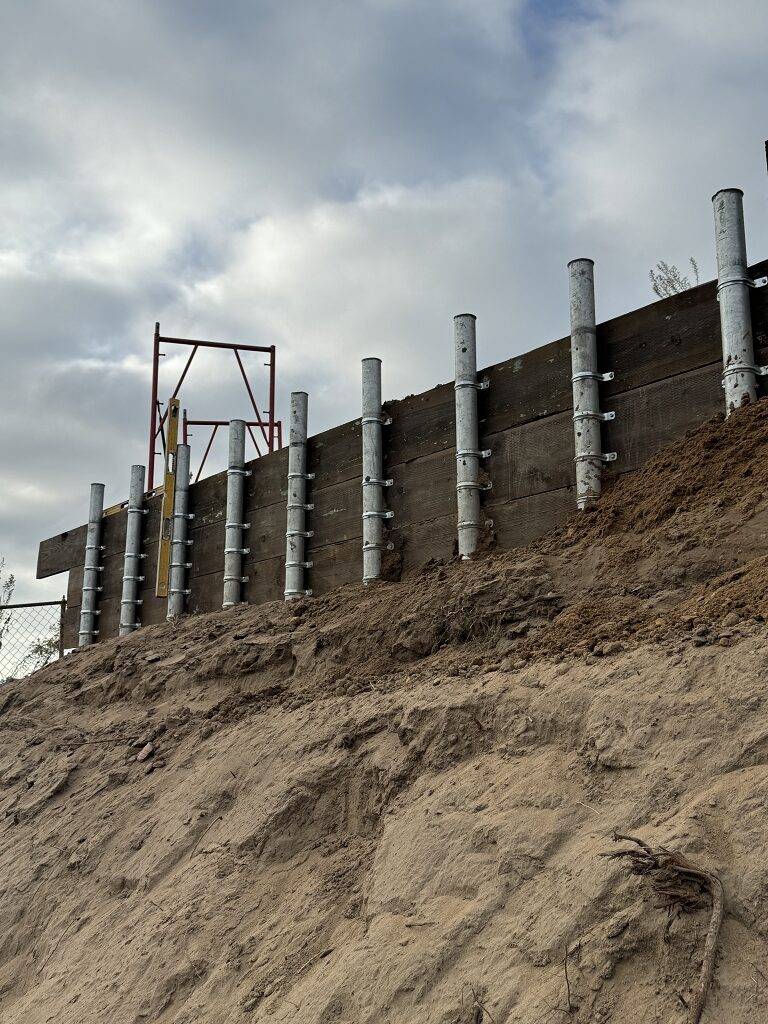 - Caissons and Lagging: A reliable solution for deeper and steeper slopes. We drill caissons into the hillside to create a stable foundation. Heavy-duty lagging boards are then placed between the caissons to form a barrier, preventing soil movement.